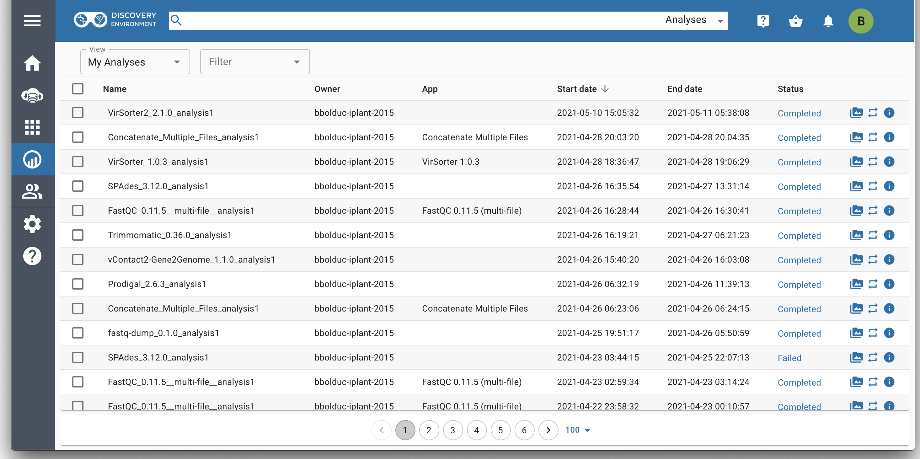 In the Discovery Environment ("DE") is the interface many users will use when interacting with CyVerse. From the DE, users can find apps, view analyses, explore data, and navigate the various other resources available in CyVerse.